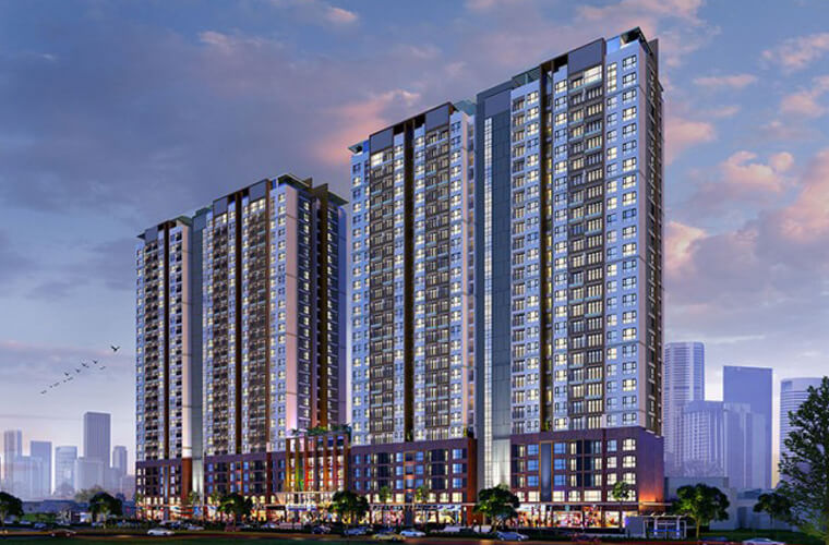 Căn hộ gồm 2 Block, quy mô 500 căn hộ, bao gồm tầng trung tâm thương mại, hồ bơi, trường mầm non.