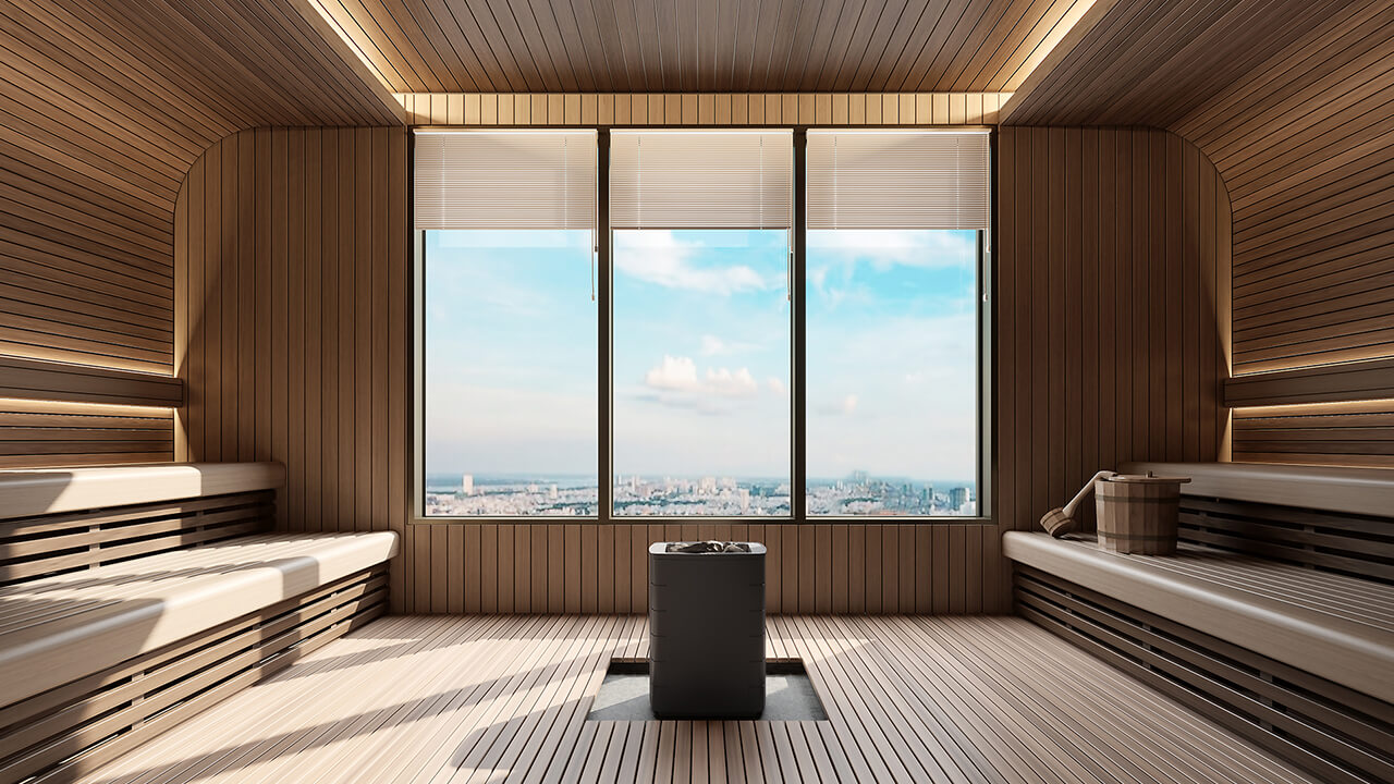 Phòng xông hơi sauna và khu vực lockers tiện nghi